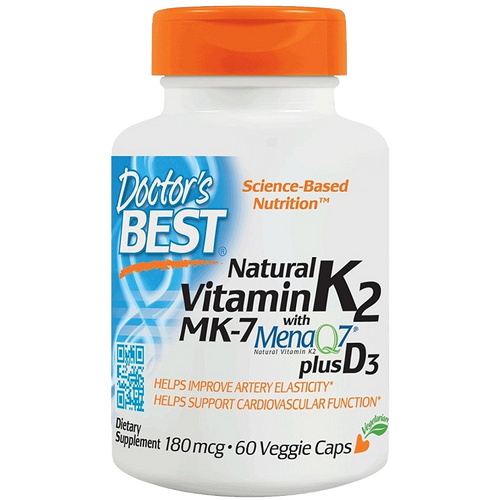 Doctor's Best Natural Vitamin K2 MK7 mit MenaQ7 plus D3, 180 mcg – 60 Kapseln